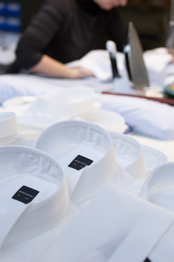 Bottega Artigiana è un brand emergente di camiceria. Totalmente Made in Italy, è in grado di confezionare in maniera artigianale la tua camicia, se lo desideri anche su misura. In tal caso la consegna dalla fabbrica si aggira intorno ai 20 giorni. I costi per queste camicie artigianali si aggirano intorno ai  95.00 euro. Quelle su misura da 110.00 a145.00 euro, a seconda del grado di personalizzazione e del tessuto (sempre comunque di qualità) che scegli. Secondo il concetto “il mio stile”, possiamo intervenire dalla tonalità del filo di cucitura, sino al taglio del colletto, disponibile in diverse varianti, oltre che per le tue varie misure… Quindi da quello cerimonia “Diplomatico” a bordi rialzati, fino al “Francese” molto aperto, trovi il colletto a te più gradito. La cura artigianale del dettaglio si sposa in questo prodotto veneto, con una moderna industrializzazione, dove la mano dell’uomo resta preponderante nelle diverse fasi di lavorazione. Bellissime!