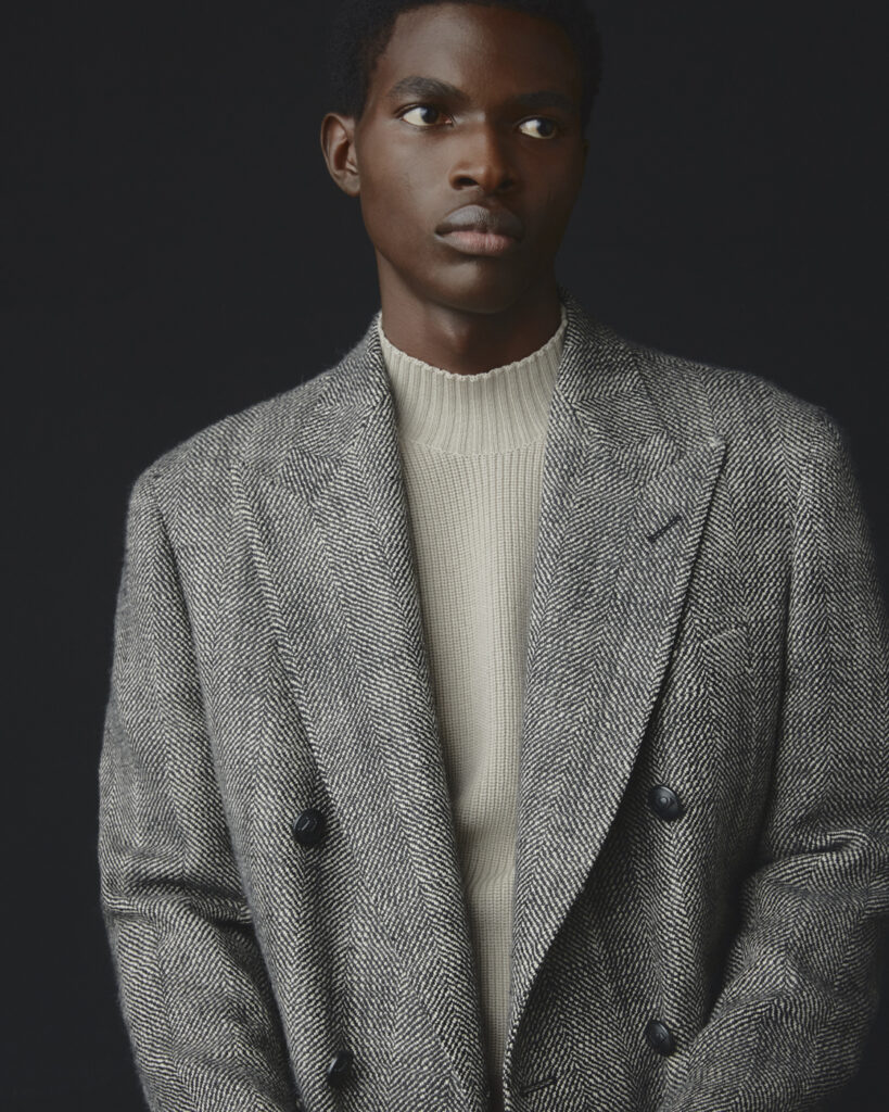 Nella collezione autunno inverno ci sono cappotti in lana e cachemire, comodi e senza tempo, abiti per il professionista dalle tinte unite ai riquadri principe di galles, passando per gessati fini di gran classe.