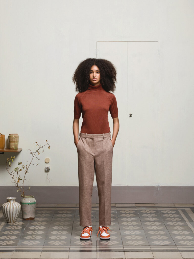 Maglie Circolo. I filati utilizzati nella nuova collezione Circolo sono estremamente confortevoli e piacevoli al tatto. Gino Baudino a Torino ha scelto colori tenui, di sapore autunnale. Coccio, giallo pallido e crema si adattano molto bene alle tinte di questa stagione. Il dolcevita rasato mezza manica raffigurato in foto, in leggera pura lana merino’s, è un complemento ideale per il nuovo guardaroba. Risultano quindi interessanti e ricchi di stile nuovi outfit combinati con le giacche ed i soprabiti in velluto o in felpa. Circolo 1901 realizza la propria maglieria con dettagli e qualità sartoriale, l’orlo è dritto con collo e dettaglio a coste, la finezza del filato è la pregiata 14.